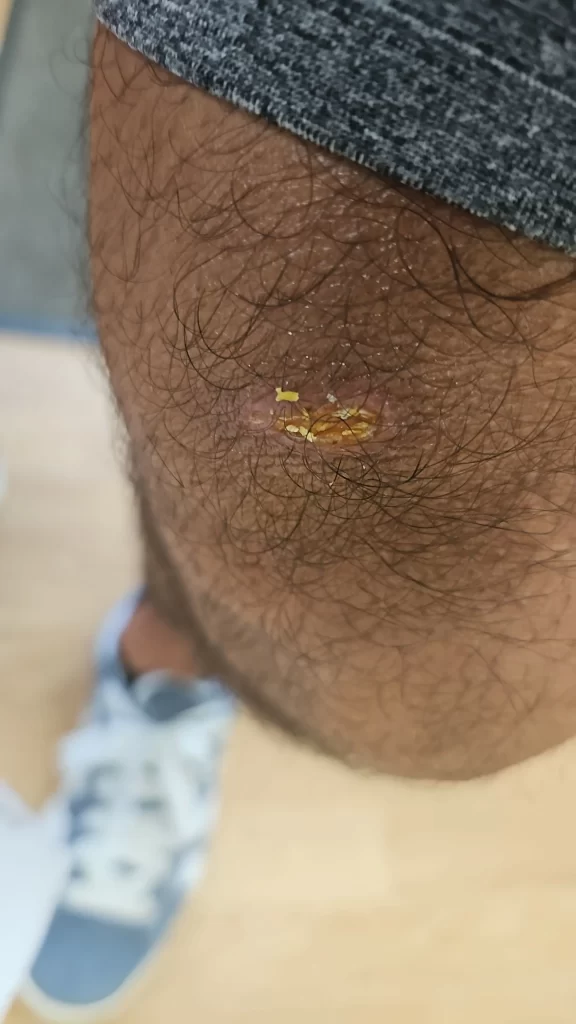 So went in for the pre op checks today and this damn cut on the left knee hasn’t healed and the multiple applications of the steroid creme hasn’t fulled cleared it..